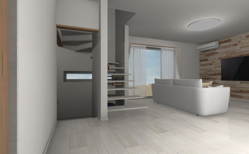 階段下にフリースペースを確保。